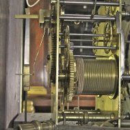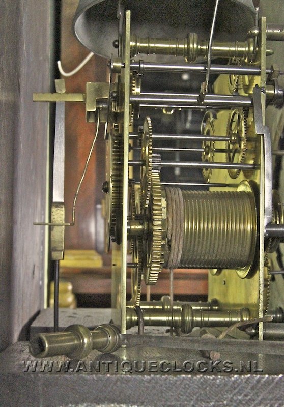 | ca. 1710, gangduur van bijna 2 maanden. Hoogte 2,50 mtr. Jacobus Willemore was werkzaam Antwerpen en in Mechelen (Malines). Jacob Willmore (of Willemore) was horlogemaker en werktuigbouwkundige uit Engeland en werkzaam van 1705-1711 in Mechelen en Antwerpen. De pilaren en de opwindkruk hebben een typerende vorm die kenmerkend is voor Willmore. In 1706 kreeg hij de opdracht voor het vervaardigen van 4 wijzerplaten voor de Sint-Romboutstoren in Mechelen met een diameter van 13,7 meter. Uurwerken van deze belangrijke maker vindt u o.a. in: Stedelijk Museum Vander Kelen Leuven Universiteitsbibliotheek Leuven Bibliotheek van de Katholieke Universiteit Leuven. |