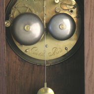 Groot uurwerk met kwartier- en uurslagwerk op 3 bellen. 3 weken gangduur. H=61 cm, B=32 cm, D=15 cm