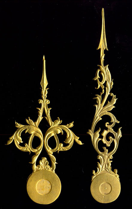 Alle hier aangeboden wijzers zijn replika's van originele antieke modellen en zijn haarscherp vacuüm gegoten in messing. De wijzers zijn afgewerkt maar zonder wijzerbus, optioneel verguld. |