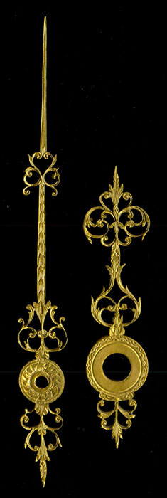 Alle hier aangeboden wijzers zijn replika's van originele antieke modellen en zijn haarscherp vacuüm gegoten in messing. De wijzers zijn afgewerkt maar zonder wijzerbus, optioneel verguld. |